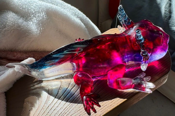 Glass resin axolotl figurines! Each handcrafted figurine measures approximately 7 inches long and 4 inches wide, made from high-quality, heavy solid glass resin for a durable and luxurious feel. These charming axolotls are available in a variety of vibrant colors, making each one truly unique. Whether displayed indoors or outdoors, these eye-catching pieces make perfect decorations for any room in your home, from living rooms to bedrooms, or even in your garden or patio. Their smooth, glossy surface and light-reflective properties make them ideal for windowsills, where they capture and scatter sunlight, adding a delightful sparkle to your space. With their whimsical charm and artistic craftsmanship, these axolotl figurines are sure to bring joy and color to your décor. Shop now and find the perfect addition to your home!